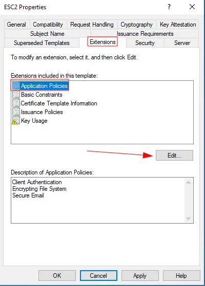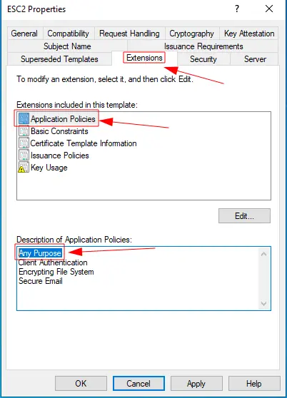Extensions → Application Policies / Enhanced Key Usage (EKU):