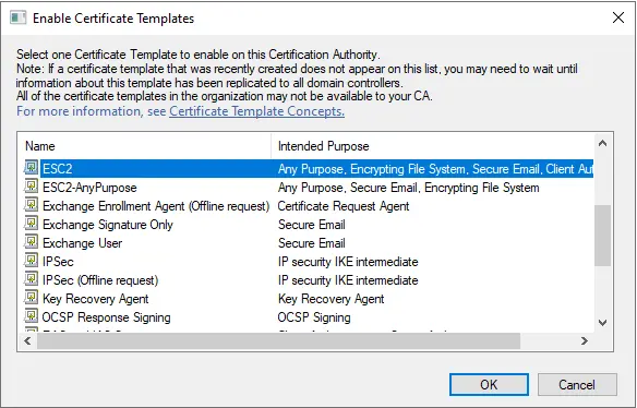 En el último artículo de esta serie sobre AD CS, vimos cómo se puede usar ESC1 para obtener privilegios elevados en Active Directory. En esta publicación, explicaremos la explotación de certificados ESC2 en AD CS , donde un usuario con privilegios limitados puede solicitar un certificado de “Cualquier propósito”.