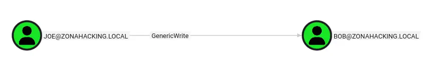 De esta forma, el usuario joe tiene el permiso GenericWrite sobre el usuario bob.