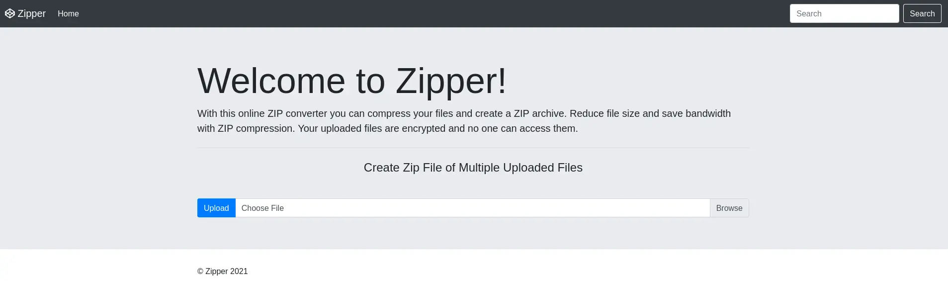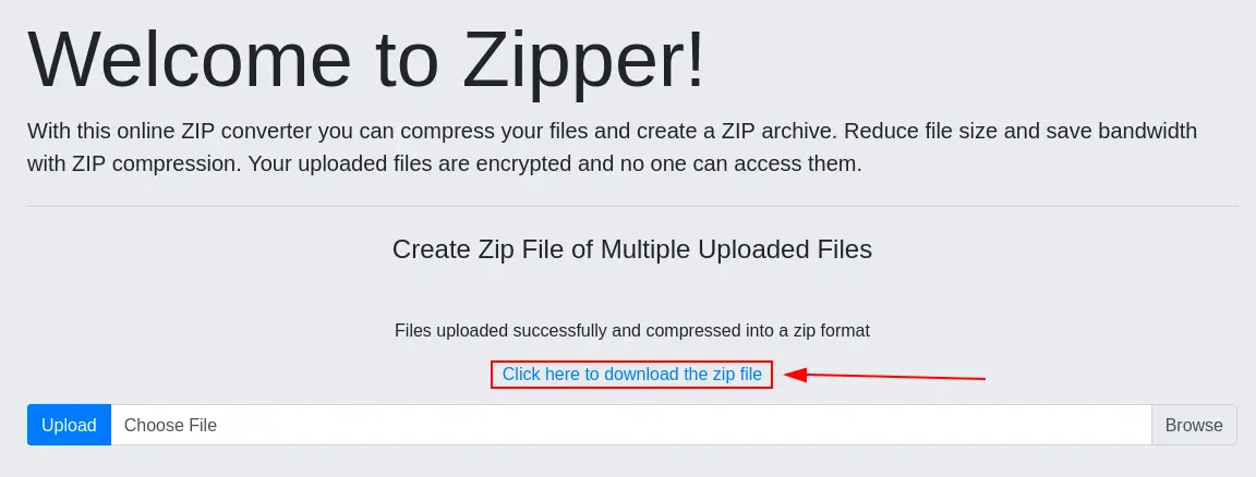 Como podemos observar, contamos con un formulario para subir uno o más archivos los cuales serán comprimidos en un archivo ZIP el cual luego podremos descargar.